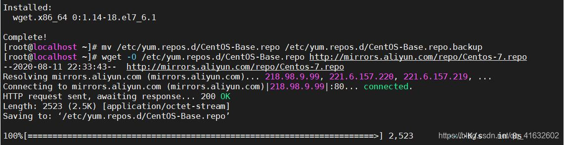 wget -O /etc/yum.repos.d/CentOS-Base.repo http://mirrors.aliyun.com/repo/Centos-7.repo