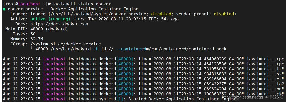 active表示运行成功,如果无法运行,可以查看journalctl -xe查看报信息,也可以查看vim /var/log/message系统日志,查看报错信息,并修改相关错误,一般的报错会在下一篇文章给出,可以参考修改