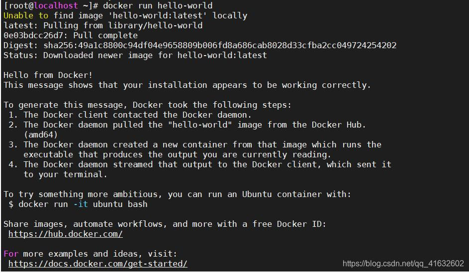 通过运行hello-world 映像来验证是否正确安装了Docker Engine 。