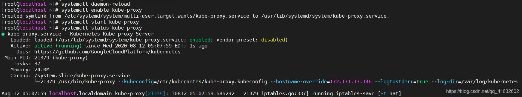 vi /etc/kubernetes/kube-proxy.confKUBE_PROXY_ARGS="--kubeconfig=/etc/kubernetes/kube-proxy.kubeconfig --hostname-override=172.171.17.146 --logtostderr=true --log-dir=/var/log/kubernetes --v=4"上述配置文件的相关参数修改和kubelet相同,如--hostname-override需要需改为主机的node的ip