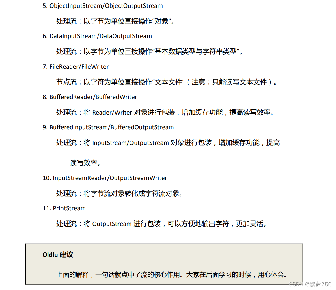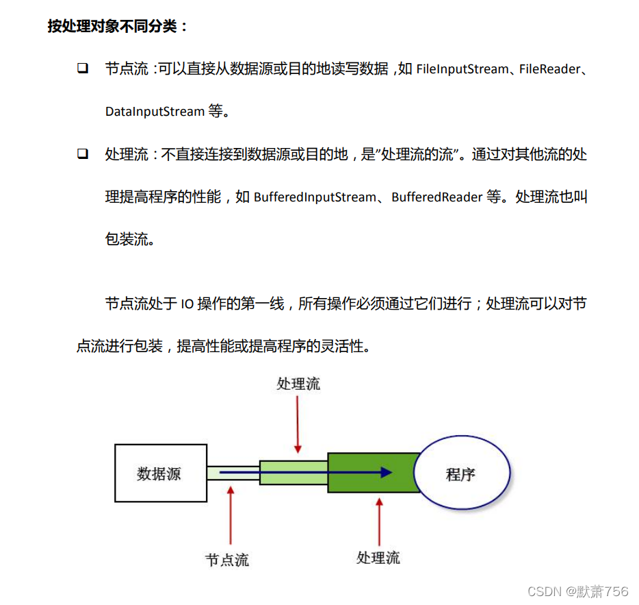 处理流:不直接连接到数据源或目的地,是处理流的流。通过对其他流的处理提高程序的性能。