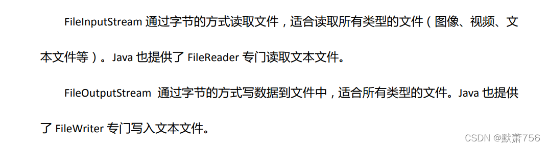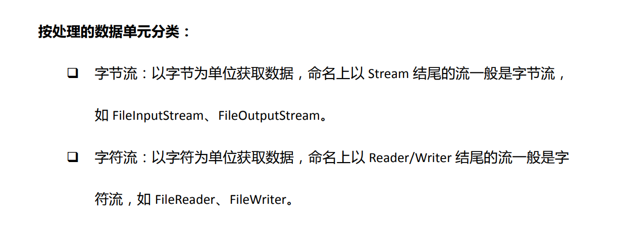 字节流:按照字节读取数据(InputStream、OutputStream)。