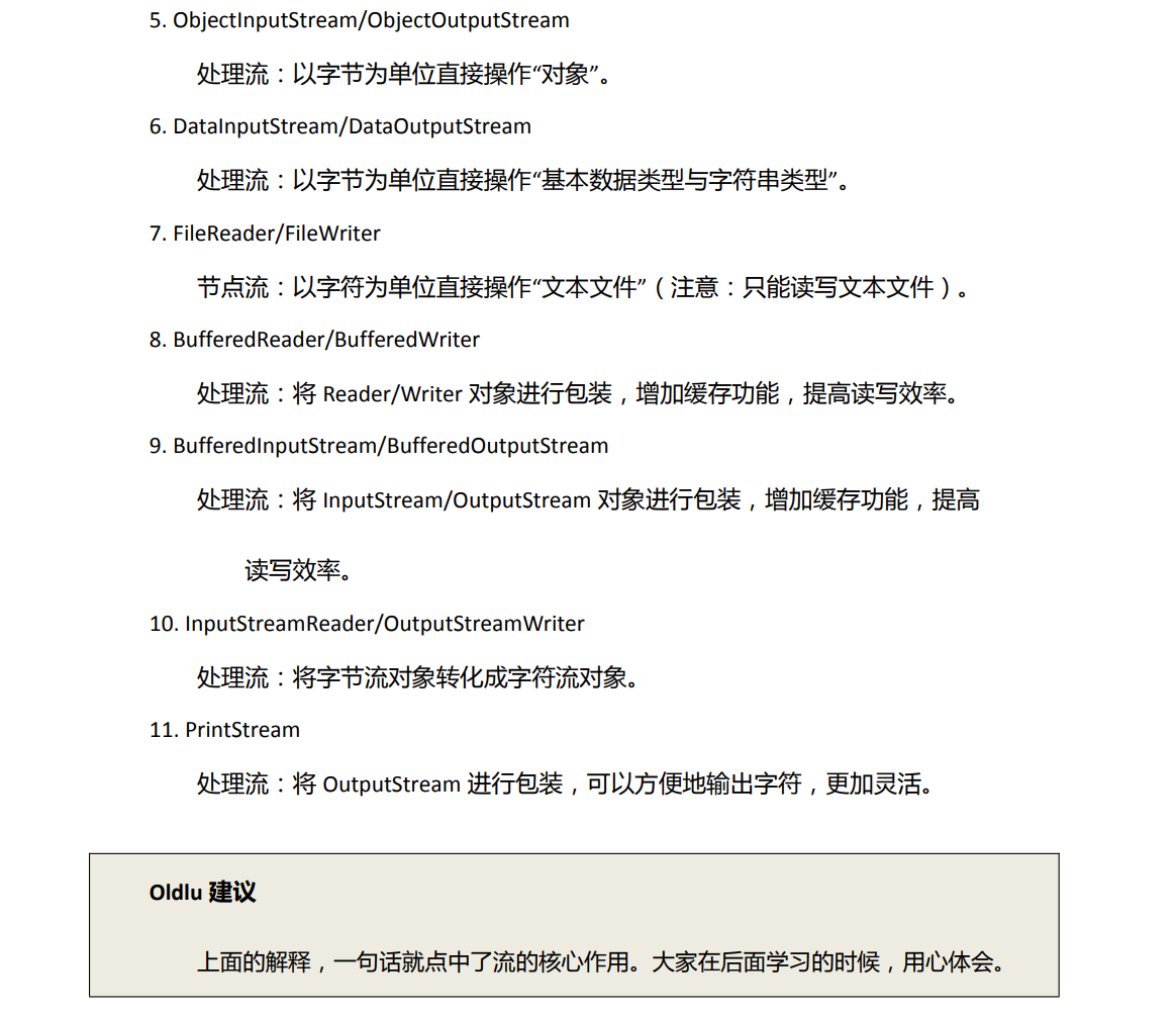 Java为我们提供了多种多样的IO流,我们可以根据不同的功能及性能要求挑选合适的IO流。
