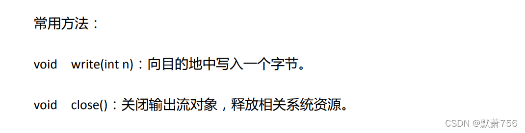 此抽象类是表示字节输出流的所有类的父类。输出流接收输出字节并将这些字节发送到某个目的地。