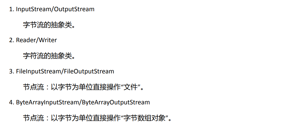 IO的四个基本抽象类:InputStream、OutputStream、Reader、Writer