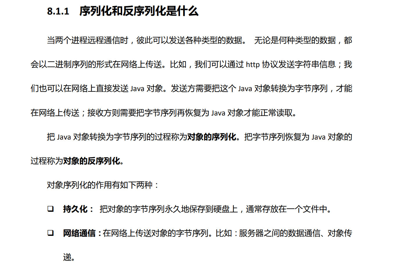 把Java对象转换为字节序列的过程称为对象的序列化。