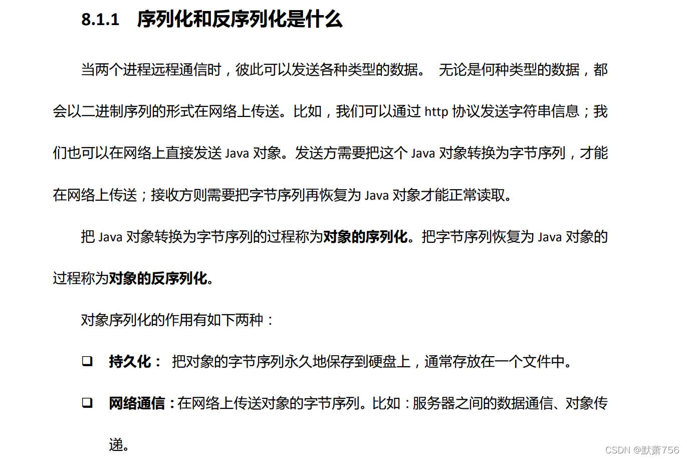 把字节序列恢复为Java对象的过程称为对象的反序列化。