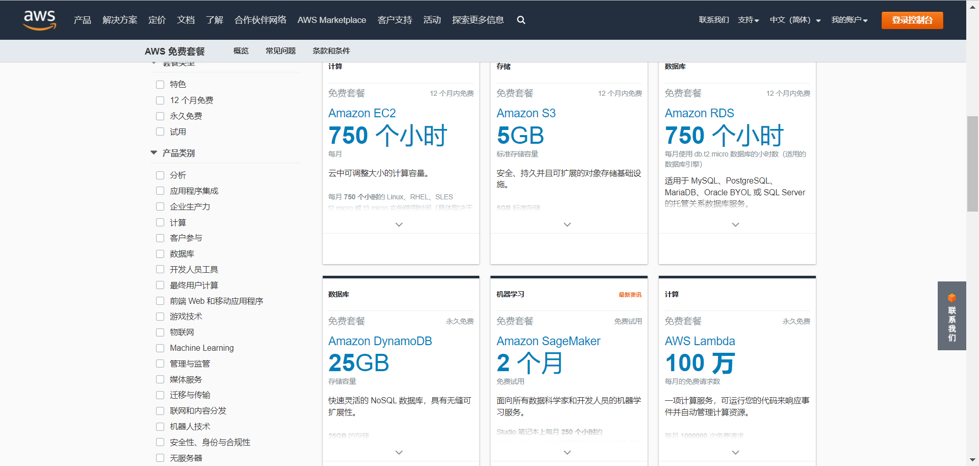 1.AWS官网地址:Cloud Computing Services - Amazon Web Services (AWS)