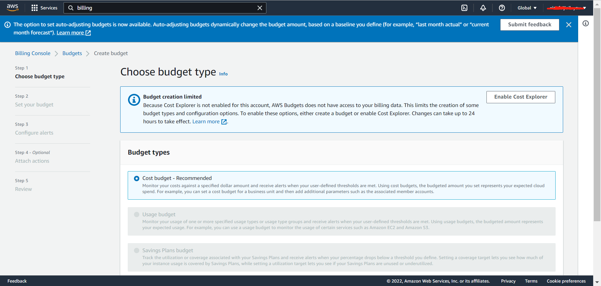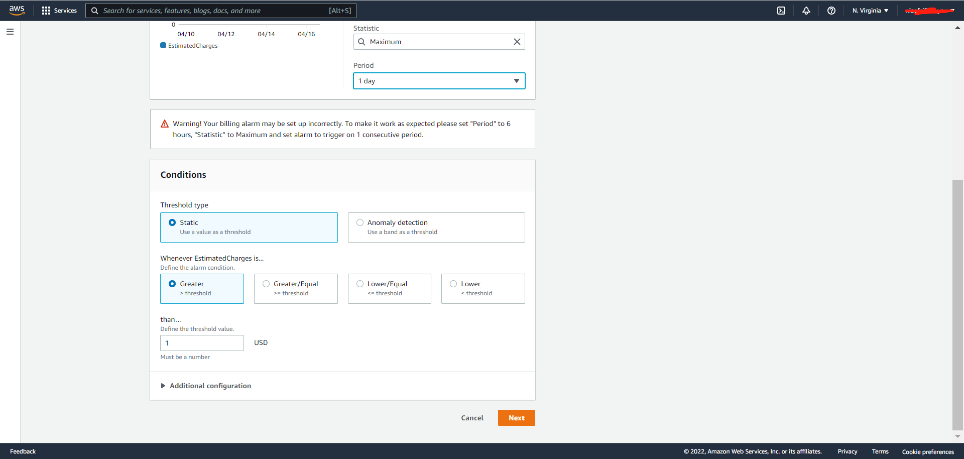 三、设置AWS花费预警