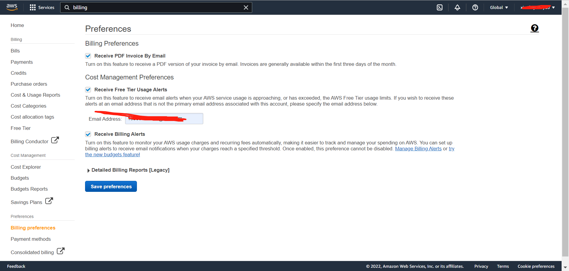 2.搜索billing服务将账单发送到你的邮箱
