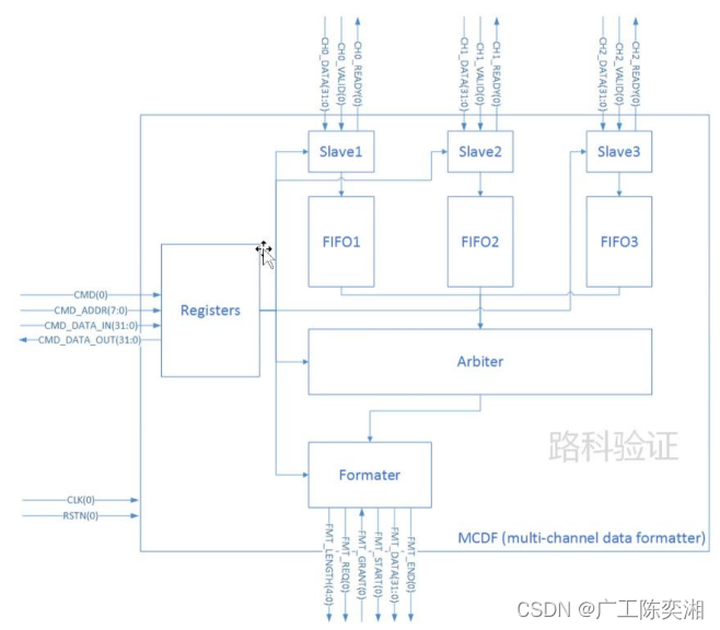 在最后的mcdf_rgm中,所有寄存器class被作为随机变量,声明寄存器map,build_phase中对每个寄存器进行例化、配置、调用build、例化map+每个寄存器偏移地址,预留了后门访问的添加路径。最后是lock_model,这部分要再复习一下uvm的寄存器模型。
