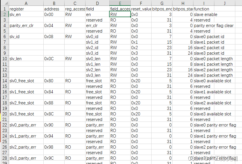 这是自己的傻逼更新,需要更改的地方是:预留区域reserved为RO只读,id的重置值不是全部为0;域不是信号名;free slot的重置值时'd32