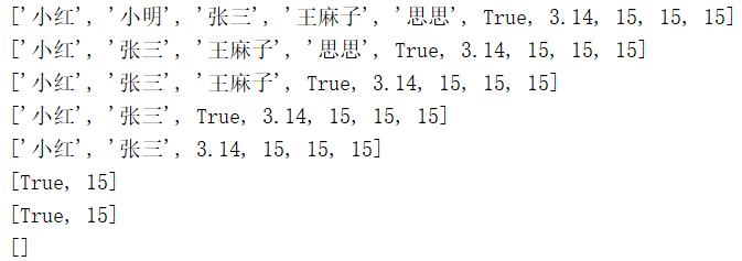 my_list = ["小红", "小明", "张三", "王麻子", "思思",True,3.14,15,15,15]