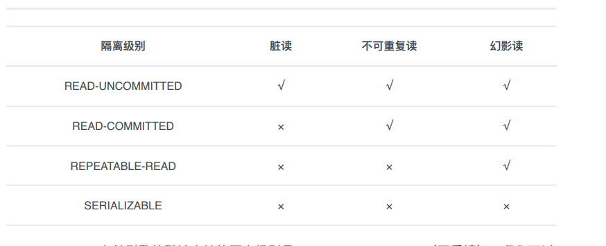 - READ-COMMITTED(读取已提交):允许读取并发事务已经提交的数据,可以阻止脏读,但是幻读或不可重复读仍有可能发生。