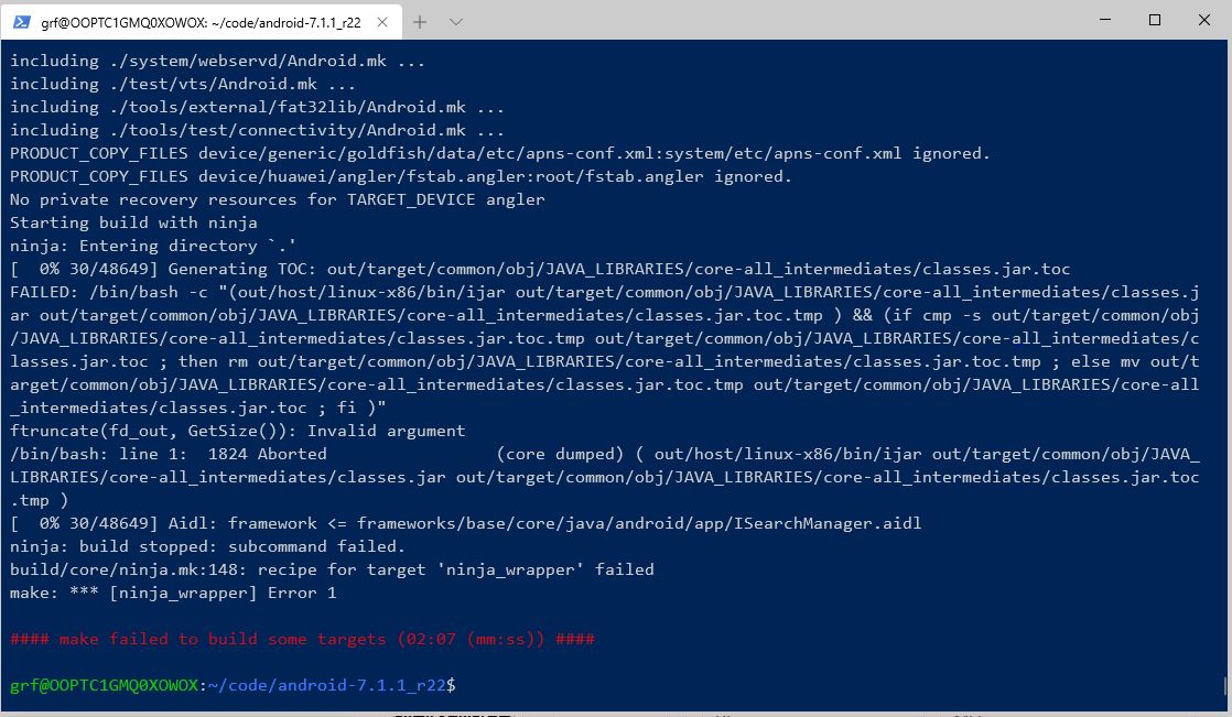 目前编译android 7的进展就到这里了,找不到好的解决办法,如果有大神知道怎么回事,还请点拨一下。