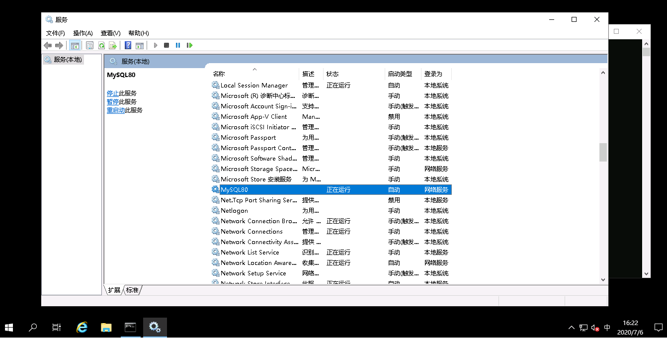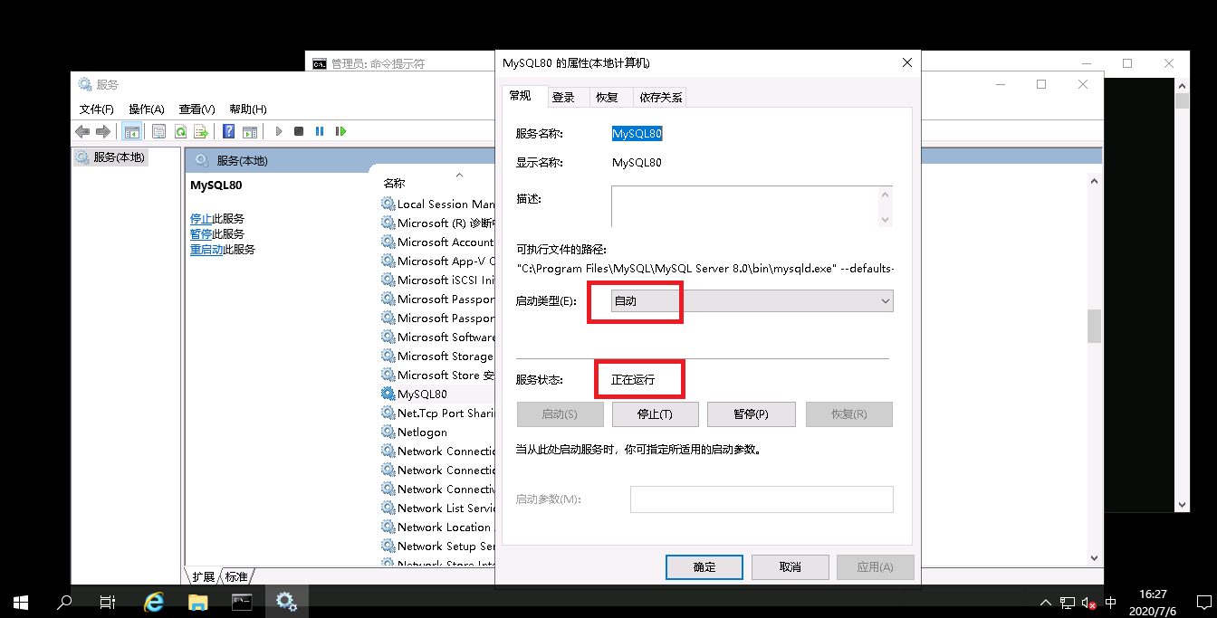 2、查看MySQL80是否正在运行和自动