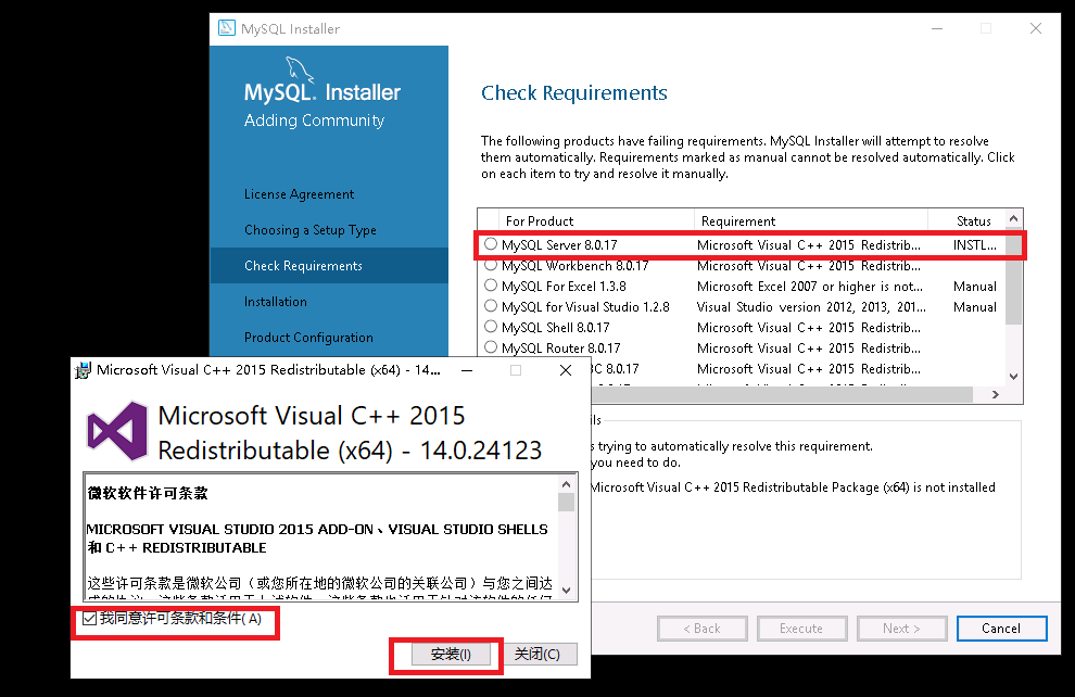 5、勾选【我同意许可条款和条件】,然后点击安装