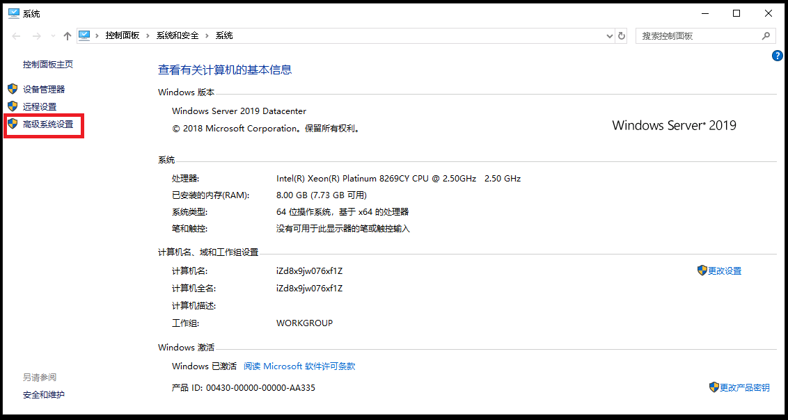 1、点击高级系统设置