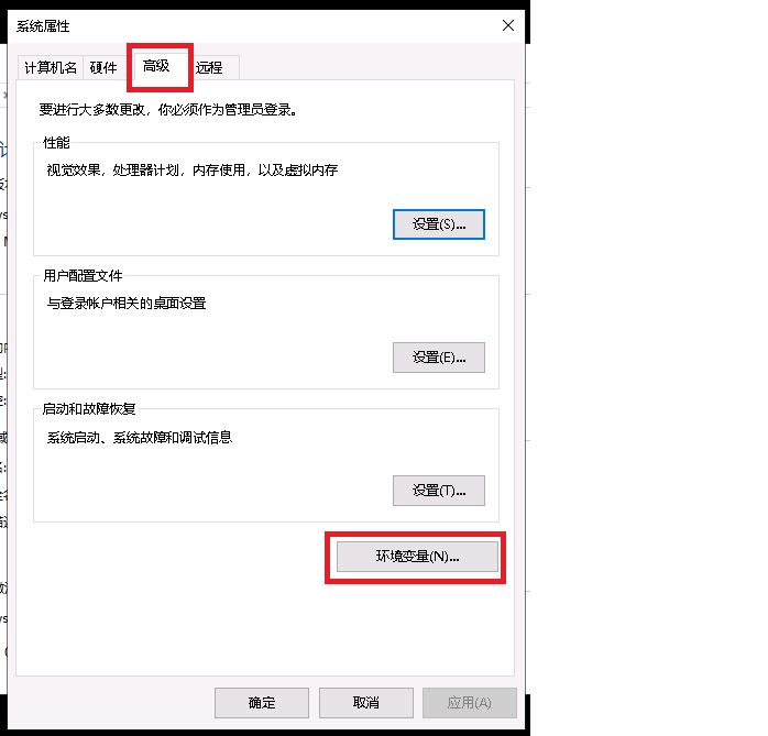 2、点击 高级--->环境变量