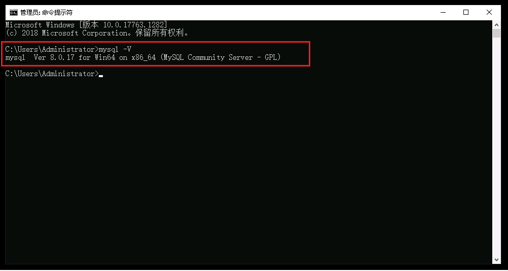 设置好MySQL的环境变量后,重启阿里云WINDOWS SERVER 2019服务器,然后进入命令行,在任何路径下输入mysql -V