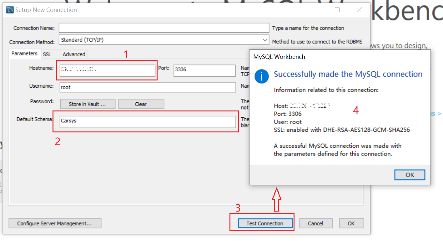阿里云WINDOWS SERVER 2019服务器上创建了一个Carsys用户数据库,本地电脑为WINDOWS10操作系统,而且本地电脑也安装了MySQL数据库系统,下面介绍如何用本地电脑上的MySQL Workbench软件远程测试连接阿里云WINDOWS SERVER 2019服务器上创建的用户数据库。
