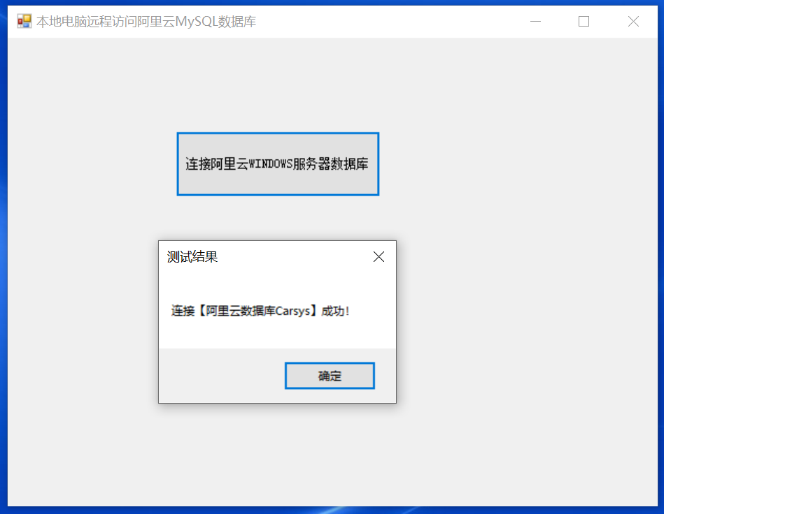 警告:要想要本地电脑上远程测试连接阿里云WINDOWS SERVER 2019服务器上创建的用户数据库,必须事先将阿里云WINDOWS SERVER 2019服务器上的数据库系统设置为支持远程控制(具体设置参见六)。