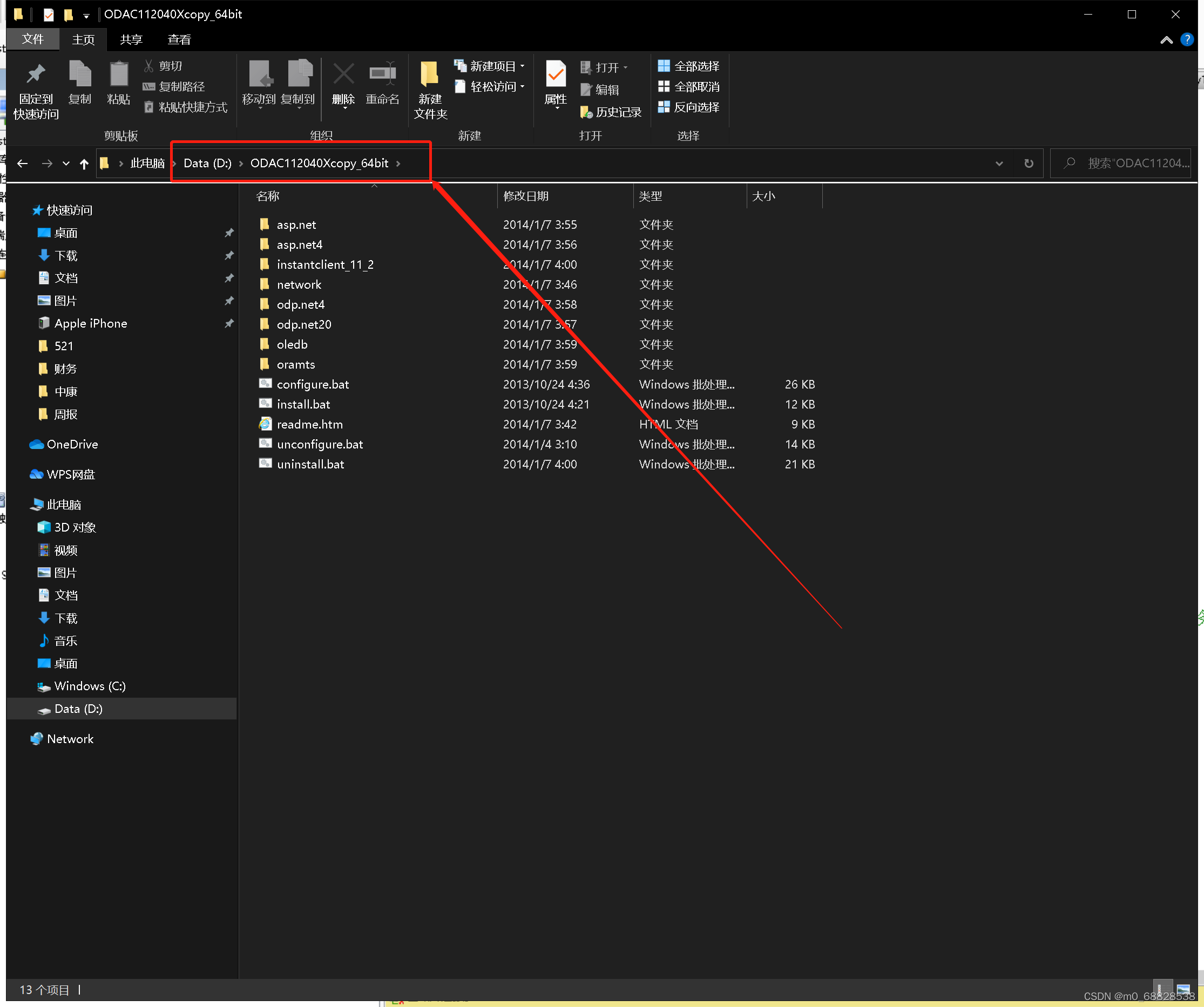 进入文件夹:cd D:\ODAC112040Xcopy_64bit