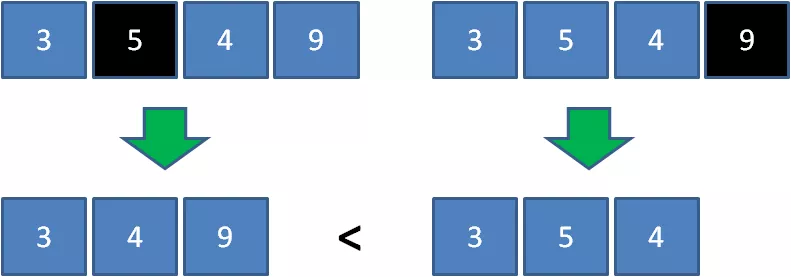 当当前数字大于右边数字的时候,删除当前数字,这样一来,补充当前数字的位置的是右边数字,自然值就变小了。