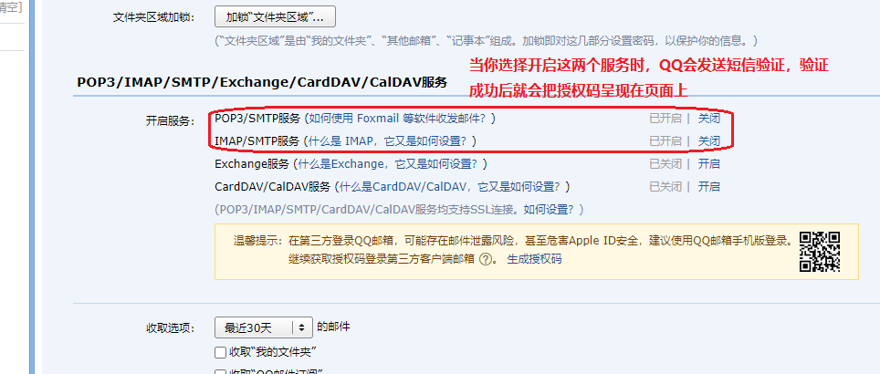 获取邮箱授权码的方式:(以QQ邮箱为例)TIPS:开启POP3/SMTP服务和IMAP/SMTP服务的作用: