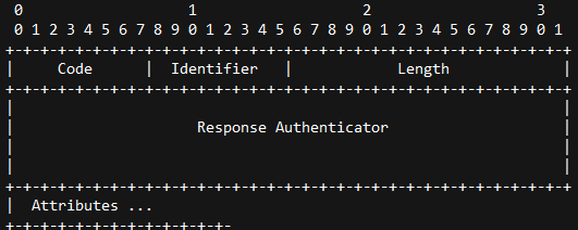 Access-Accept报文格式如下, 字段从左到右传输。