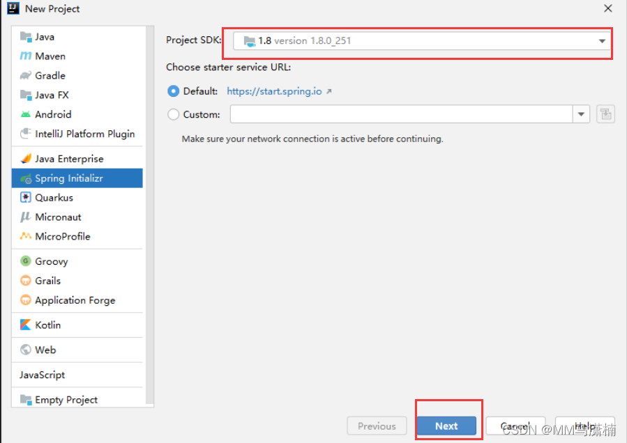 2.在IDEA欢迎界面,点击【New Project】按钮创建项目,左侧选择【Spring Initializr】选项进行Spring Boot项目快速构建。