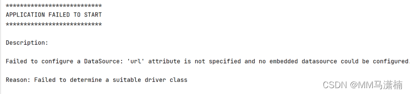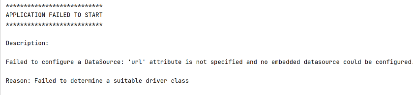 Failed to configure a DataSource: 'url' attribute is not specified and no embedded datasource could be configured.