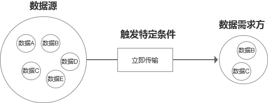 即操作事件后即触发了数据传递的操作,这跟同步接口的概念很类似,适用于对数据时效性要求高的场景,而且会由于高并发增加系统的负荷。
