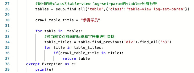 BeautifulSoup 就是根据 'table' 和class的内容在网页中找到这个表格的,代码如下: