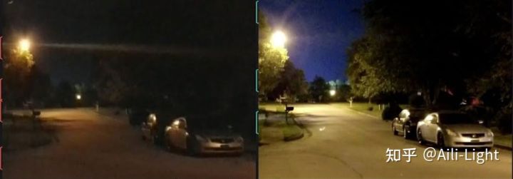 图8:高灵敏度摄像头(右)暗光下的图片对比普通摄像头(左)