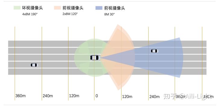 图7:不同FOV的镜头在自动驾驶车上的应用案例