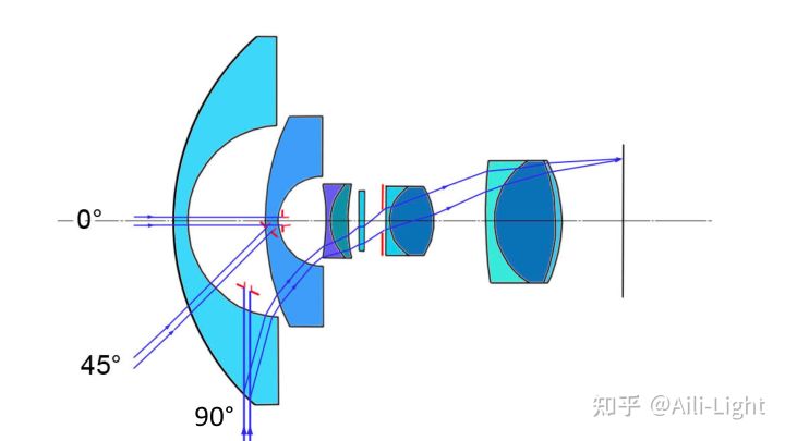 使用非球面镜片可以减少镜片的数量,提高成像质量。特别是在FOV较大的情况,例如鱼眼镜头,最外侧的镜片通常用非球面镜片(图4)。车载摄像头需要较高的成像质量、较好的温度特性(高低温)以及耐久性,因此往往会使用5-6片全玻璃非球面镜片。