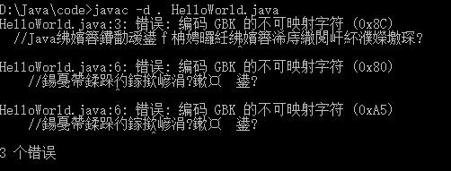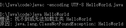 D:\Java\code>javac -encoding UTF-8 HelloWorld.java