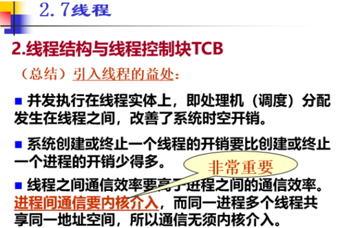 线程的开销较小:(创建一个新线程花费时间少,两个线程切换花费的时间少,线程之间相互通信不用调用内核)