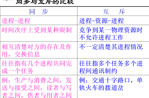 进程同步是指对多个相关进程在执行次序上进行协调,它的目的是使系统中诸进程之间能有效地共享资源和相互合作,从而使程序的执行具有可再现性;或系统中诸进程之间在逻辑上的相互制约的关系(直接的-同步;间接的—互斥)。