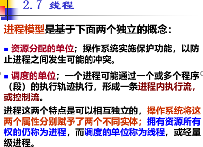 线程共享所在进程的地址空间和其它资源,可以创建、撤销另一个线程