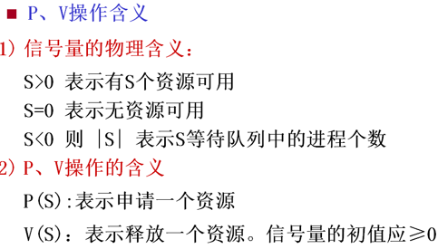 V操作:释放资源,增量操作 s.value=s.value+1;当s.value<=0时,唤醒s.queue中的等待进程