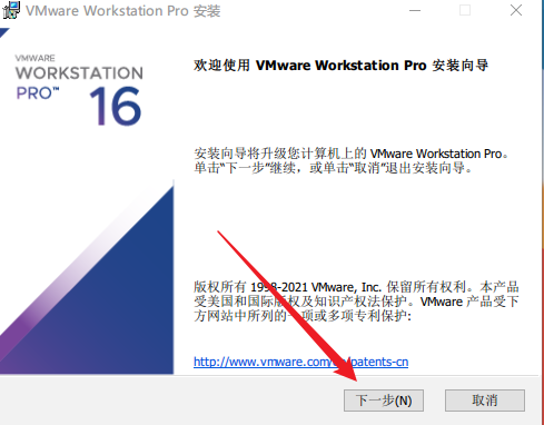 下载的VMware-workstation-full-16.1.2-17966106,双击运行