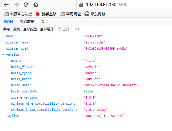 -p: 指定端口映射,格式为:主机(宿主)端口:容器端口3.浏览器访问ip:9200 如果出现以下界面就是安装成功