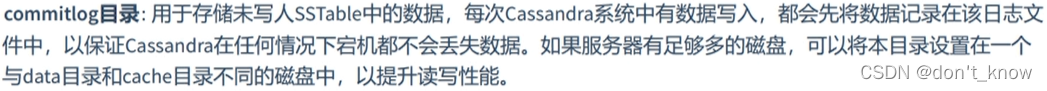 (1)data目录:用于存储真正的数据文件,即SSTable文件,可以指定多个目录,每个目录在不同的次磁盘中,这样Cassandra可以利用更多的磁盘空间。