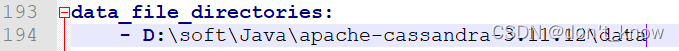 (2)在config目录下找到cassandra.yaml配置文件,添加data目录配置