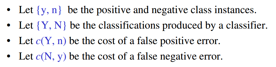 在大多数情况下不同类别的分类代价并不相等,即将样本分类为正例或反例的代价是不能相提并论的。例如在垃圾邮件过滤中,我们希望重要的邮件永远不要被误判为垃圾邮件,还有在癌症检测中,宁愿误判也不漏判。在这种情况下,仅仅使用分类错误率来度量是不充分的,这样的度量错误掩盖了样本如何被错分的事实。所以,在分类中,当某个类别的重要性高于其他类别时,可以使用Precison和Recall多个比分类错误率更好的新指标。