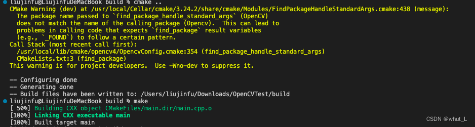 target_link_libraries(main ${OpenCV_LIBS} ) # 设置target需要链接的库③编译