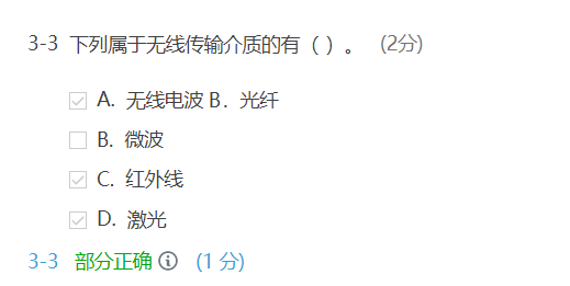 3-3 这道题目答案应该是:无线电波,光纤,红外线,激光