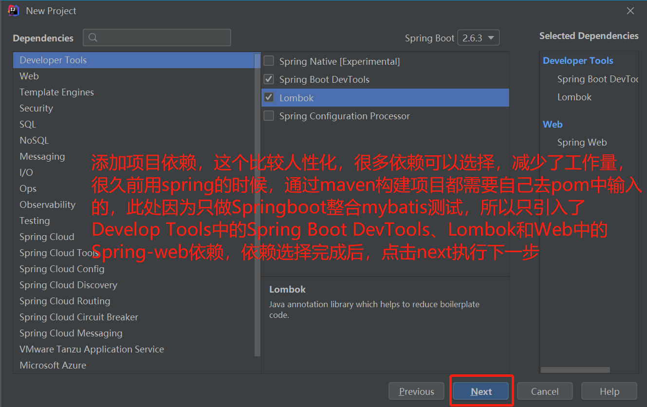 DevTools用于热部署,Lombok用于添加一些注解,省略代码量.